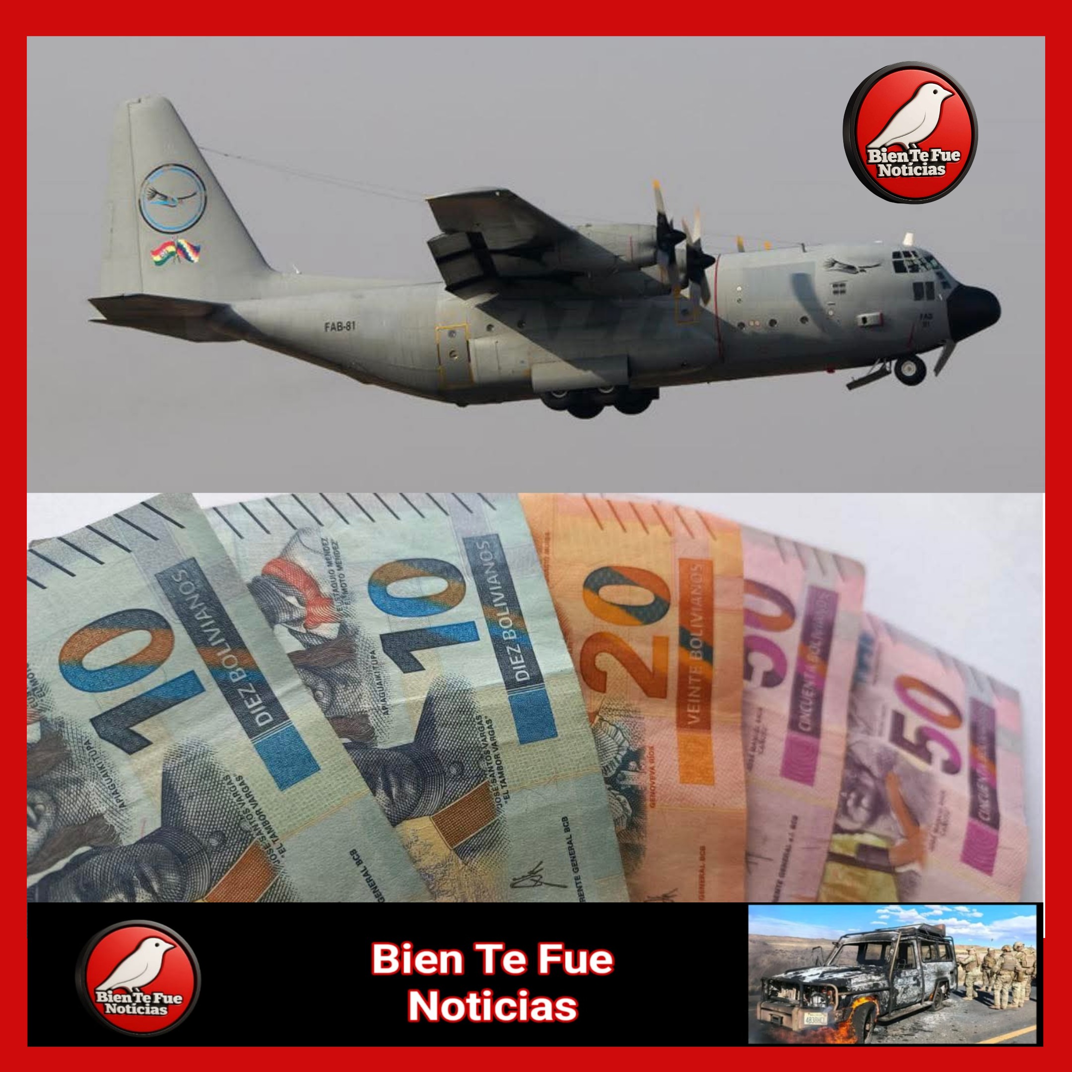 El Presidente del BCB mediante una conferencia de prensa informó la cantidad de billetes que transportan el avión Hércules C-130 FAB-81 perteneciente a TAB.