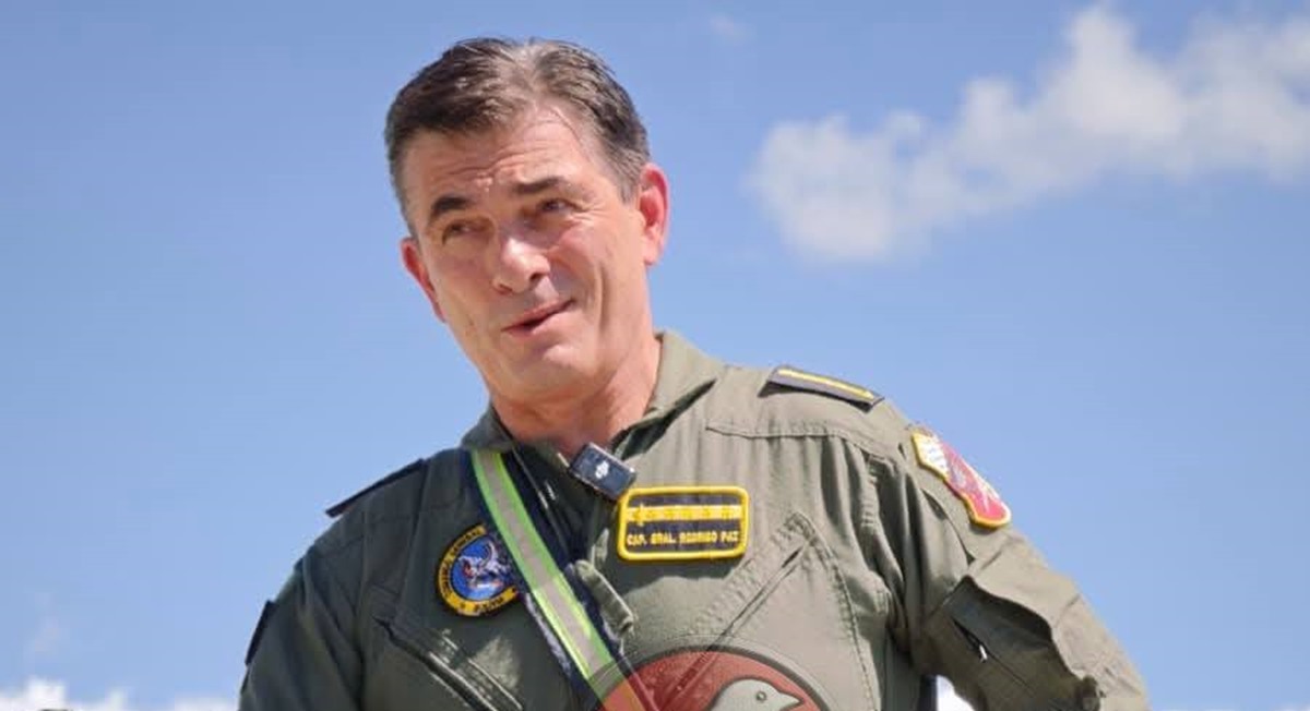Oficiales militares de la brigada aérea de la Fuerza Aérea Boliviana de Tarija le da la bienvenida al presidente Rodrigo Paz y capitán general de las Fuerzas Armadas. Se realizó el bautizo y el brindis tradicional de los pilotos de caza cuando realizan su primer vuelo y lo declaran miembros honorarios de este cuerpo.